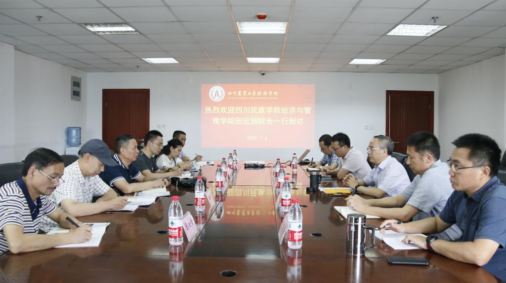 7月6日下午,四川民族学院经济与管理学院院长田应国、党总支书记周德荣一行六人到77779193永利官网考察交流。77779193永利官网院长蒋远胜、副院长吴平、党委副书记何仁辉、金融系主任臧敦刚、经济系主任曹正勇等参会,会议由蒋远胜主持。