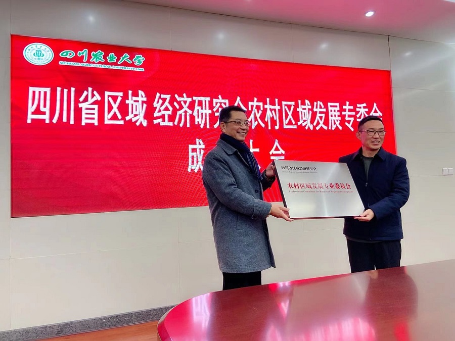 开幕式上,四川省区域经济研究会会长、西南交通大学区域经济与城市管理研究中心主任戴宾教授宣读了农村区域发展专业委员会成立的批复意见并授牌,同意漆雁斌教授为专委会主任委员。四川农业大学党委常委、组织部长杨锦秀教授代表学校进行了致辞。