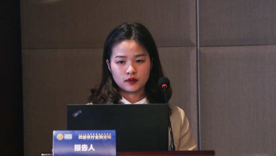 西藏大学的薛倩以“普惠金融对各地区贫困和收入不平等的影响以及其他影响因素探究——基于31省面板数据实证分析”为主题进行介绍。她表示,团队从两个维度开展探究,制定出六个具体指标并与以往的指标进行比较,最终得出地区人均收入、法治、年龄抚养比率等因素均会影响中国普惠金融水平以及普惠金融水平会对中国的贫困率及收入不平等造成影响的结论。