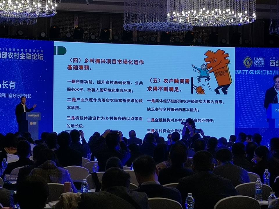 谭红杰指出,四川农信作为农村金融主力银行、地方金融主力军银行、普惠金融主力军银行,深刻了解农村借贷现状,始终坚持支持“三农”发展的战略方向和战略定力,全面助力我省农民增收、农业增效和农村发展。四川农信先后与省农业厅、省供销社等15个省级部门签订了全面战略合作协议,积极搭建政银合作平台,并加大产融支持力度,在2019年前三季度共支持新型农业经营主体14.4万户,占全省银行业的63.9%。在创新金融产品服务方面,四川农信通过“政担银企户”等合作贷款模式,拓宽“三农”贷款增信方式,同时按照”乡镇建站,村村布点“的目标推广乡村金融综合服务站。为全力支持脱贫攻坚,四川农信用好用活扶贫再贷款,在今年前三季度较一般贷款成功降低2-3个百分点降低发放的扶贫贷款利率,并针对深度贫困地区群众,创新推出”党员扶贫快快车贷“等特色产品。