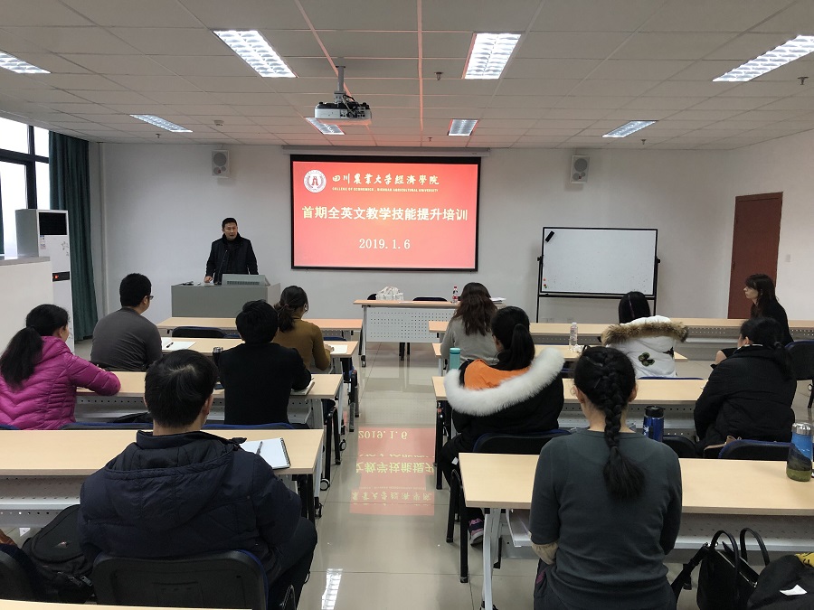 1月6日上午,77779193永利官网与英国教育中心合作举办的首期全英文授课教师教学技能提升培训班在成都校区开班。学院副院长吴平、外籍培训师Rachel Anfiled、国际经济与贸易系主任沈倩岭、学院行政办负责人及首期16名参训教师参加了开班仪式。