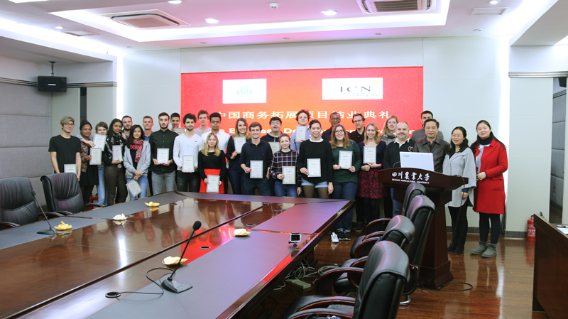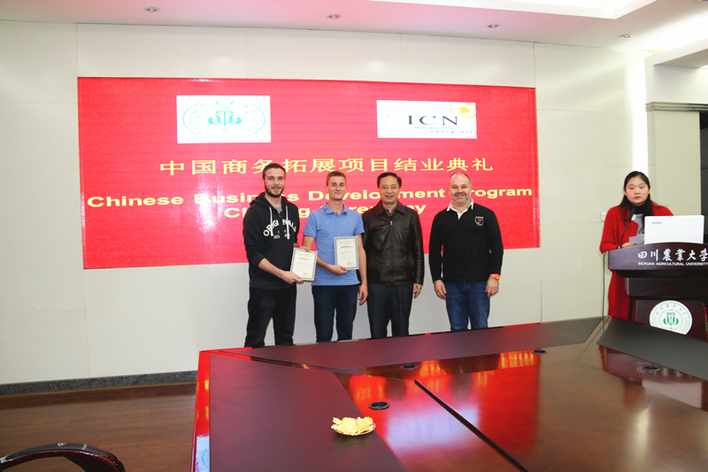 12月15日下午,法国南锡高等商学院与四川农业大学中国商务拓展项目结业典礼在1教301会议室举行。院长蒋远胜、法国南锡高商系主任Gérald Duffing教授出席了结业典礼。结业典礼由国贸系主任沈倩岭副教授主持。