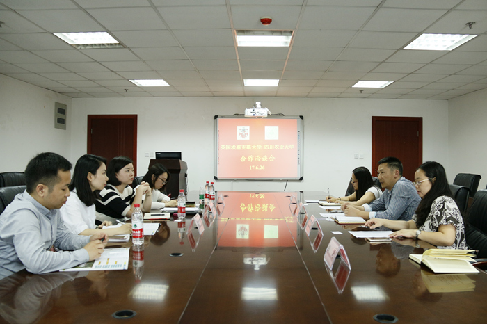 围绕我校与英国埃塞克斯大学前期合作“3+1本硕连读”项目的学分互换及奖学金设置等问题,双方进行了深入细致的磋商。之后,双方就开展优秀本科生公派项目、公派出国联合培养硕士博士研究生项目、成立海外实践教学基地以及教师访学活动等新的合作进行探讨,并初步达成一致意见。孙聪女士表示,随着四川农业大学与英国埃塞克斯大学合作的深入,双方将积极拓展新的合作模式,提升国际发展空间,促进双方合作共赢。