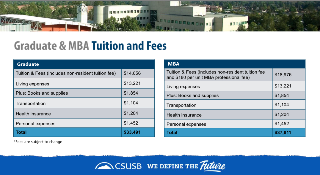 加州州立大学享受加州州政府支持,加州政府对教育的投入非常大,所以加州州立大学圣贝分校的学费和生活费非常便宜,MBA阶段所有费用才23.5万人民币,比国内许多大学的MBA项目还便宜。并且CSUSB的MBA排在美国前20位。
