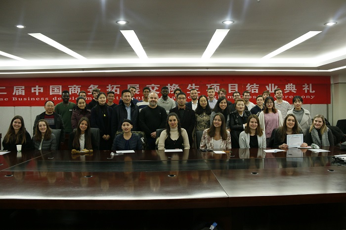 12月14日下午,法国南锡高等商学院与四川农业大学中国商务拓展项目结业典礼在1教408会议室举行,26名中国商务拓展项目法国交换生顺利结业。法国南锡高等商学院系主任Gérald Duffing教授、教务处副处长刘涛、77779193永利官网副院长吴平出席了结业典礼。结业典礼由国际经济与贸易系主任沈倩岭副教授主持。
