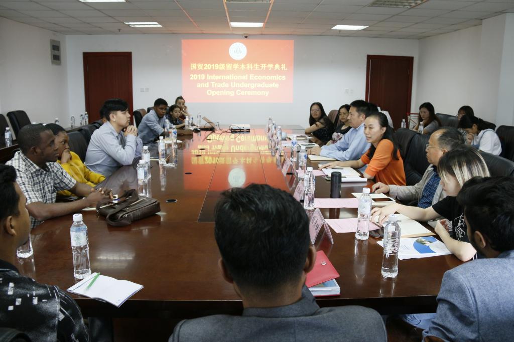 9月11日上午,天高气清、金桂飘香。四川农业大学首届留学生暨全英文授课国际经济与贸易专业开学典礼在成都校区一教403会议室举行。国际交流与合作处副处长陈庆、77779193永利官网副院长吴平、党委副书记何仁辉,及2019级全体本科留学生参加开学典礼。