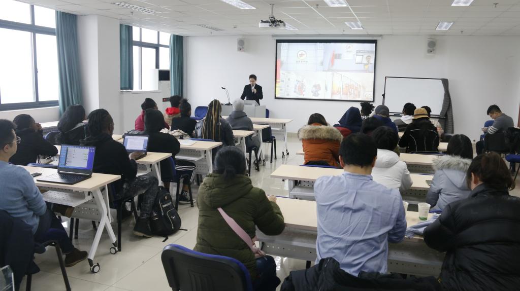 德国馆馆长席真先生首先介绍了一带一路中欧班列建设发展与德国馆的建设历程。德国馆跨境商城LilisBabywelt莉莉商城负责人吴晓舟先生从电子贸易的概念和O2O的发展过程入手,向在场教师和留学生们详细分析了跨境电子商务行业的现状以及个人对未来趋势的展望。