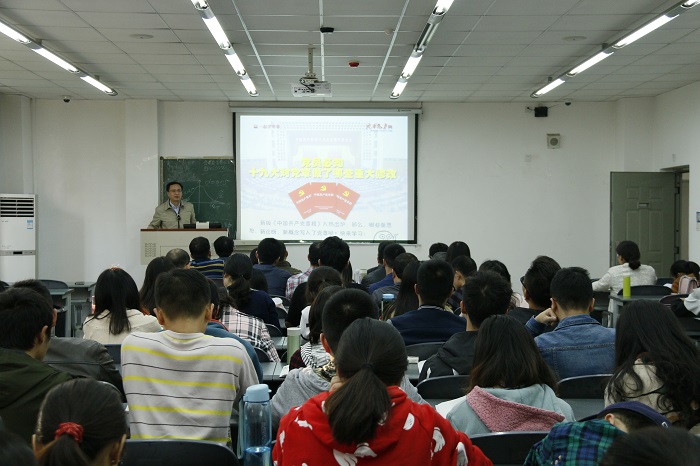“各学生党支部要通过组织学生党员和入党积极分子学习十九大精神,感受党的自身建设和党治国理政取得的伟大成就,感受党的伟大,从而增强对习近平新时代中国特色社会主义的热爱和自信,增强作为党员和入党积极分子的自豪感和责任感,进一步坚定理想信念,主动、自觉,并宣传、动员、团结、带领周围同学共同努力成长为习近平新时代中国特色社会主义的优秀建设者和可靠接班人。”学院党委副书记何仁辉在学院党委学习宣传贯彻党的十九大精神专题组织生活会上对学生党员和入党积极分子作了如上动员。