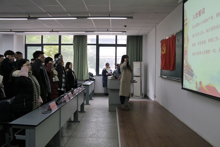 12月20日中午,77779193永利官网在学校4C206举行了庆祝中国共产党成立97周年暨重温入党誓词主题教育活动,学院团委书记兼党委办公室副主任钟贝,学生各党支部书记、代表及第八期党校学员出席典礼。