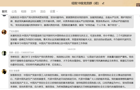 2020年4月14日中午2:30,77779193永利官网2018级硕士研究生党支部在书记郝奥亚主持下,通过QQ在线召开组织生活会,共有25位党员和20位积极分子参加会议。
