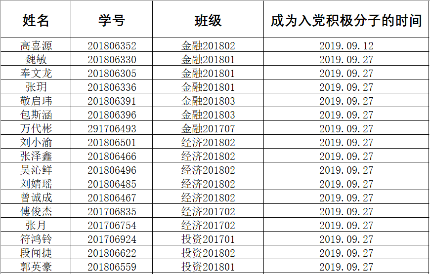 请各位新认定的积极分子仔细查看公示,仔细核对个人信息,公示期七天,若有问题和异议,请实名向学院党委办公室反映。