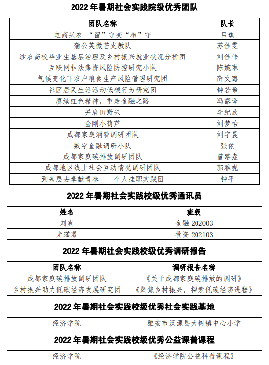 根据校团委《关于开展2022年学生暑期社会实践评优通知》,经过个人自荐、团队申请、学院2022年暑期社会实践领导小组评审,表彰以下团队和个人,现于公示如下。