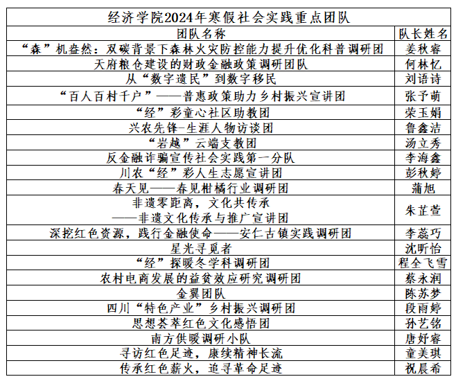 经过学院2024年寒假社会实践领导小组综合考察,现将2024年寒假社会实践拟评选院级重点团队名单公示如下: