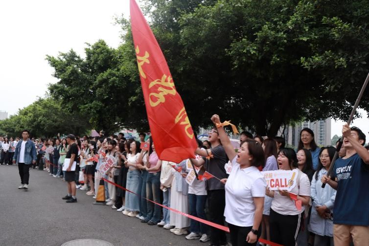 此外,学院领导和老师们也给大家注入了更为坚定的信念与信心。学院党委书记刘思麟老师半决赛时亲自前来观赛,为拔河队员们加油助威;学院党委副书记、纪委书记张翅老师时时关心着拔河队训练情况、啦啦队磨合情况,更是在赛场亲自拿起扫帚,为拔河队员们扫除场地灰尘;党委办公室的老师们时常陪同大家训练,次次前往观赛,在比赛现场和同学们一起呐喊,一起欢呼。