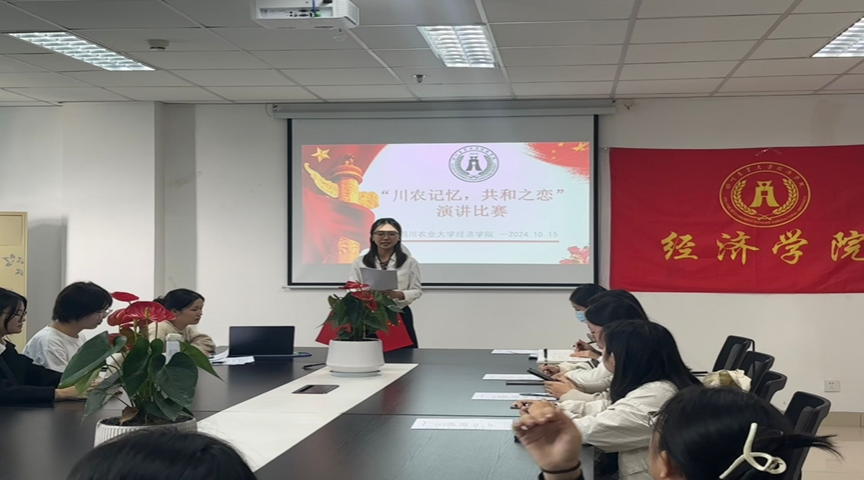 为庆祝新中国成立75周年,学院于10月15日在七教613会议室成功举办 “川农记忆,家国之恋”主题演讲比赛院赛。学院党委办公室罗利娟老师及学生团体联合会主席团成员出席活动并担任评委。本次比赛吸引了4位优秀选手参与,经过激烈角逐,最终来自国贸202401班的尹梓涵和金融202401班的刘冠汝凭借出色表现脱颖而出,成功晋级下一轮复赛。