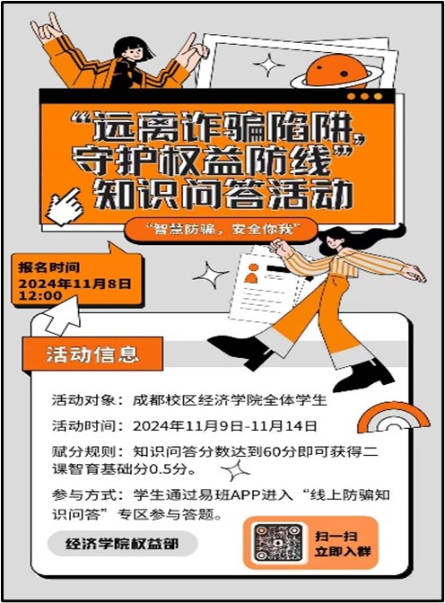 “远离诈骗陷阱,守护权益防线”活动的成功举办,不仅让同学们对网络诈骗的认识得到进一步提升,更为广大学生提供了一个交流学习平台。未来,学院将继续致力于学生的权益保障工作,举办更多类似活动,为经院学子未来发展保驾护航