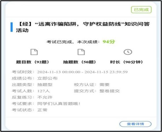 “参与此次活动,我收获满满,”来自经济(联合)202402班的高鑫钰同学说到,“在上个假期,我收到过网络诈骗信息,而本次线上问答活动让我对如何识别诈骗手段,维护自身权利有了更好的认识。希望以后还能开展类似的活动,让我们能更有效的维护自身合法权益。