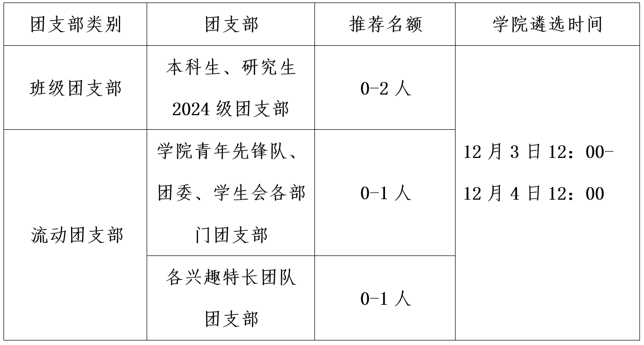 2024级同学本次可同时通过班级团支部或流动团支部进行推选。支部推选结束后,将支部大会推选结果于支部群内公示1天。