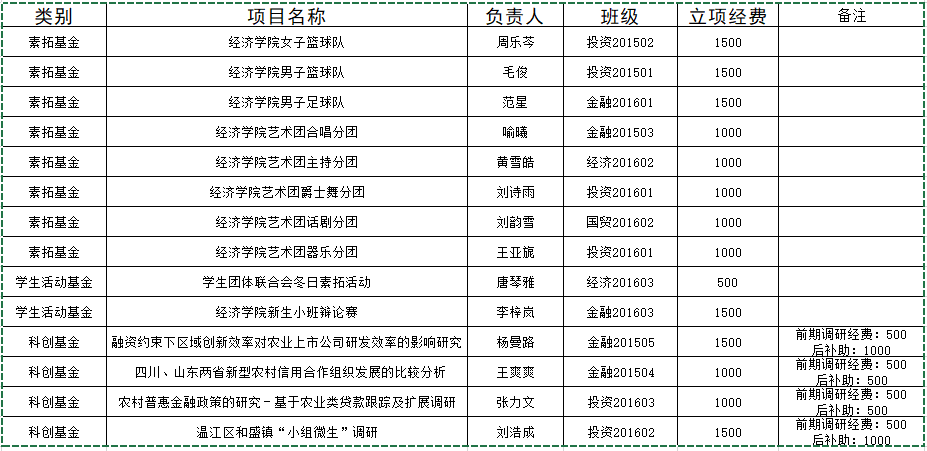 经个人及团队申请,学院团委审核,《77779193永利官网女子篮球队》等14个项目予以立项,公示如下: