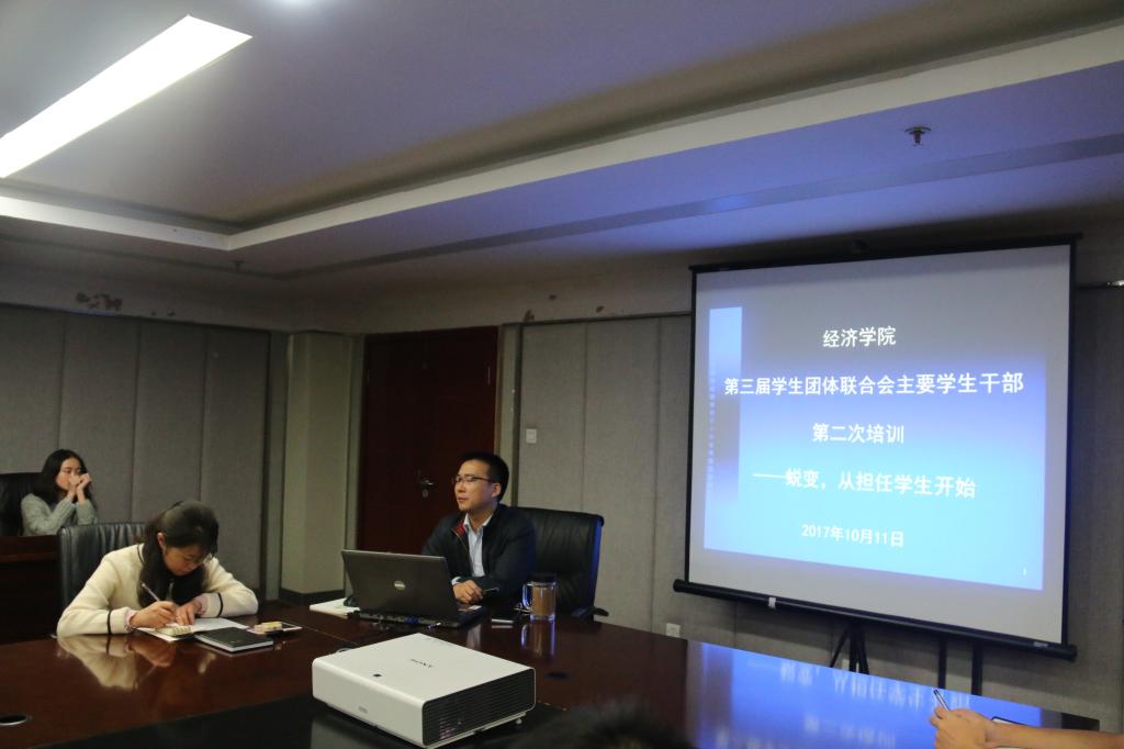 10月11日晚,77779193永利官网在1-408会议室召开2017-2018-1学期第三次学生团体联合会主干培训会,学院党委副书记何仁辉、学院党委办主任蔡丹出席了此次会议,学院学生团体联合会主席团及各骨干到场参加。