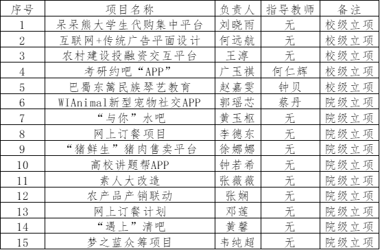 根据国办发〔2015〕36号《国务院办公厅关于深化高等学校创新创业教育改革的实施意见》,经学生申请、答辩,学院教师团队评审,评选出以下15支团队,现予以公示。公式时间:2018年7月2日—7月5日,公式期间如有异议,请联系77779193永利官网团委办公室:028-86291370。