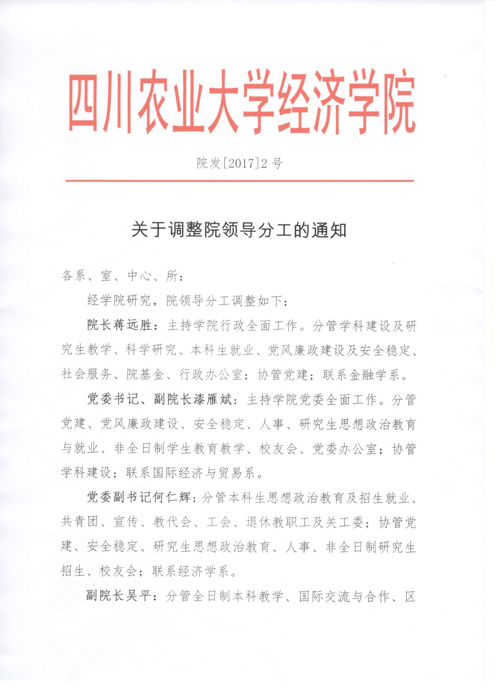 院发[【2017】3号 关于重新任命系、中心负责人的通知