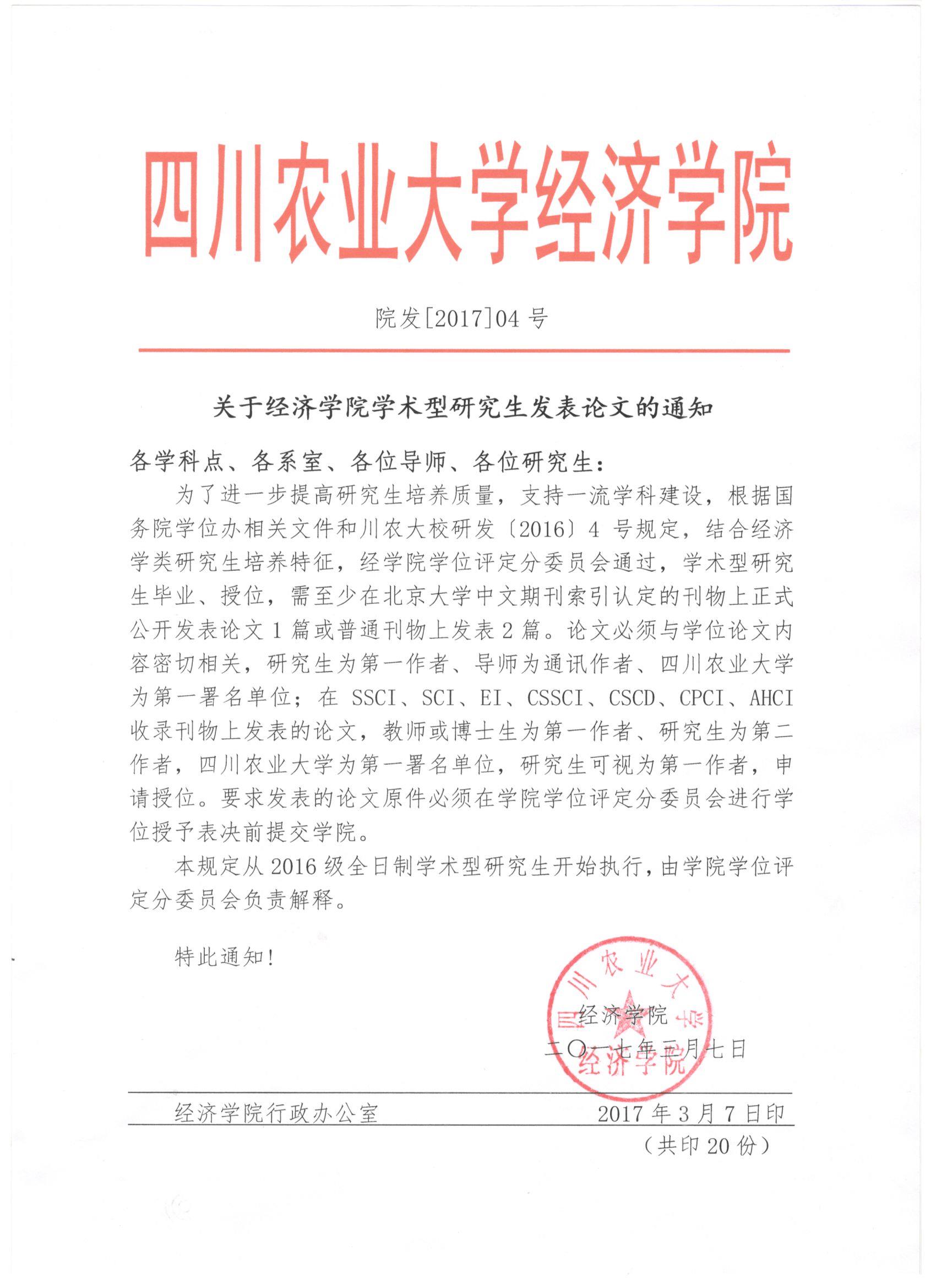 院发【2017】4号 关于77779193永利官网学术型研究生发表论文的通知