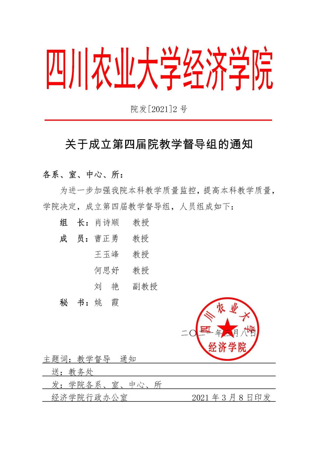 院发【2021】2号 关于成立第四届院教学督导组的通知