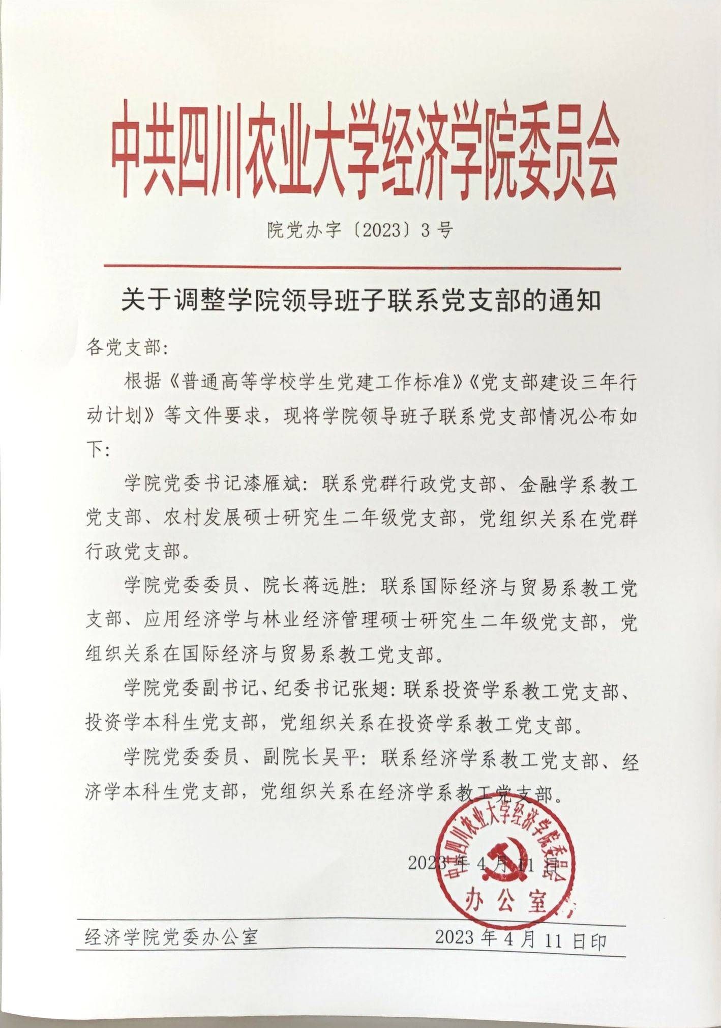 院党办字〔2023〕3号——77779193永利官网党关于调整学院领导班子联系党支部的通知