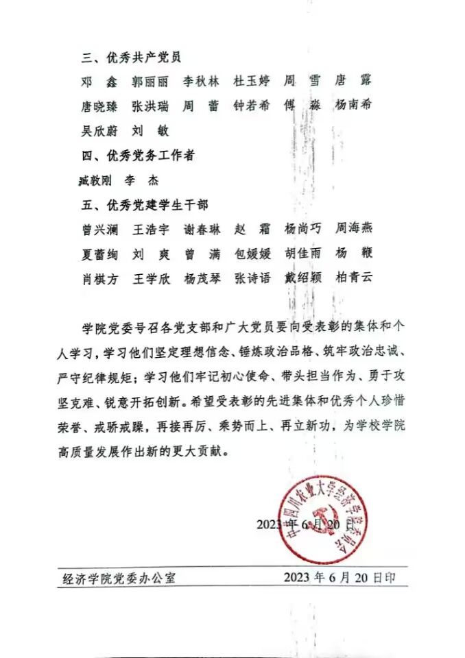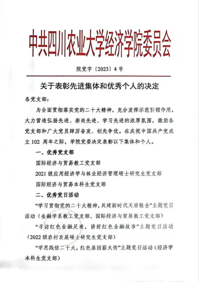 院党字〔2023〕4号——关于表彰先进集体和优秀个人的决定