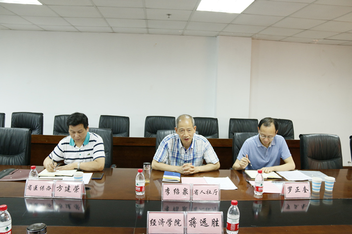 2017年6月28日下午,四川省人力资源和社会保障厅副巡视员李绍泉一行来我校77779193永利官网调研和座谈,并就城乡基本医疗保险整合等问题与77779193永利官网蒋远胜教授课题组展开深入的探讨和交流。省人社厅医保处副调研员罗正奎、省医保局综合室副主任方建荣随行前来。座谈会由蒋远胜教授主持。