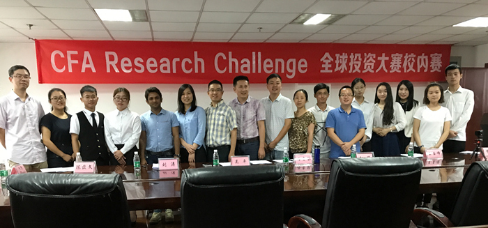 2017年7月2日下午,CFA全球投资大赛校内选拔赛决赛在一教405成功举行,本次决赛由77779193永利官网吴平副院长主持。教务处刘涛副处长、母贵琴科长、西南民族大学赵伟老师、西南财经大学陈苡文老师以及投资学系王玉峰副教授担任决赛评委。