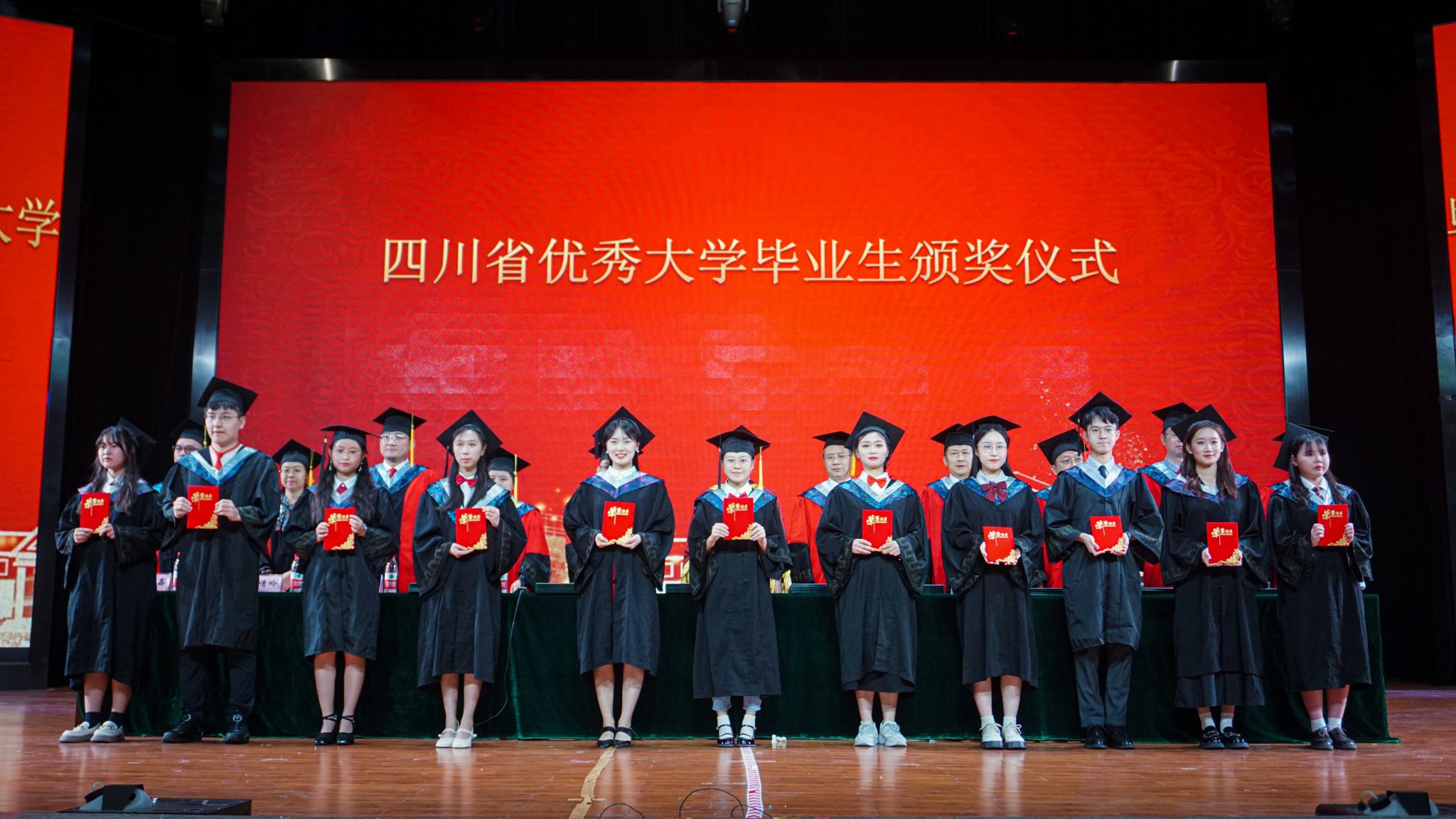 学院副院长吴平教授宣读2023届四川省优秀大学毕业生、学校优秀大学毕业生、学校优秀毕业论文和学院优秀毕业论文获奖名单,主席台就座的领导和老师为获奖代表者颁奖。