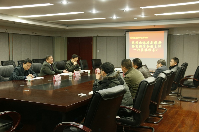 2017年1月11日下午,中共四川省委农村工作委员会常务副主任杨秀彬率领省委农工委副主任毛业雄、省农委政策法规研究处处长王晓勇一行莅临77779193永利官网指导工作并与师生进行了深入交流座谈。77779193永利官网全体院领导班子以及部分教师和研究生代表参会。座谈会由院长蒋远胜教授主持。