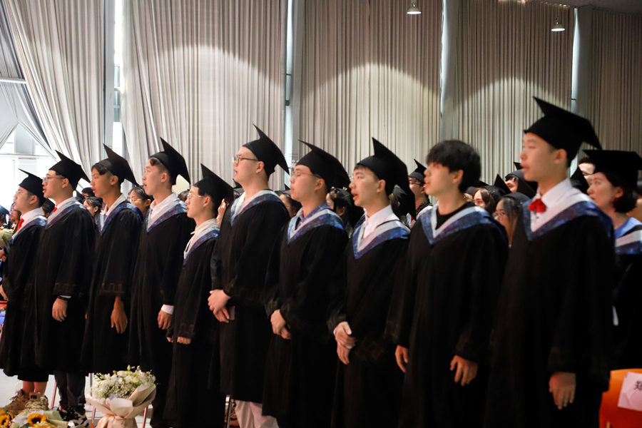 主席台就座的领导和老师为523名毕业生授位并颁发学位证。