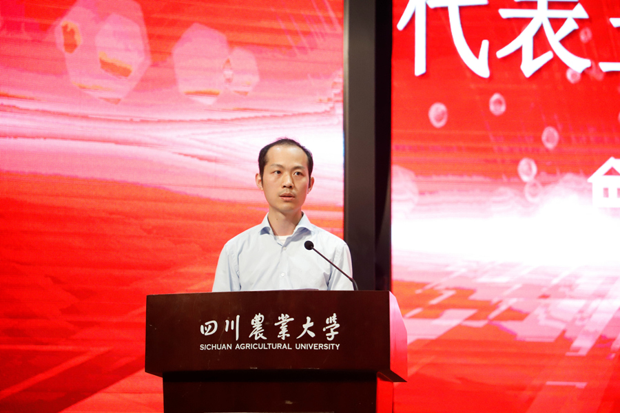 学院副院长、区域经济与金融研究所所长吴平宣读2021届四川省优秀大学毕业生、四川农业大学优秀大学毕业生、四川农业大学优秀毕业论文获奖名单,主席台就座的领导和老师为获奖者颁奖。