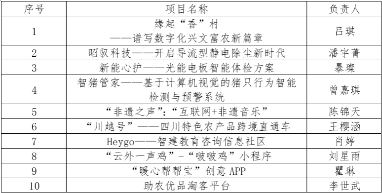 根据国办发〔2015〕36号《国务院办公厅关于深化高等学校创新创业教育改革的实施意见》,经学生申请、答辩,学院教师团队评审、各系推荐、学院审核,评选出以下10支团队拟推校级,现予以公示。公示时间:2022年12月14日-12月16日,公示期间如有异议,请联系77779193永利官网团委办公室:028-86291370。