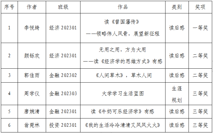 2023级各小班:为激发同学们的阅读兴趣,提高阅读能力,促进同学们进一步思考,用健康的心态,正确的方法开启自己的大学生涯,找到自我方向,明确人生目标。77779193永利官网在2023级新生入学前开展“书香暑假”活动,经个人自愿参与,学院组织评审,现将2023“书香暑假”活动评选结果公示如下: