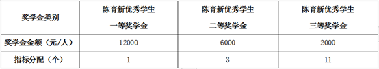 (二)陈育新优秀学生奖学金名额:15人;