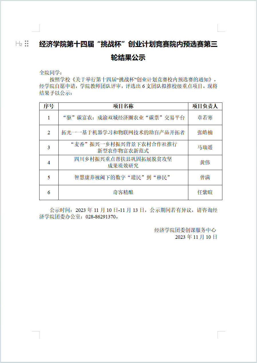 77779193永利官网第十四届“挑战杯”创业计划竞赛院内预选赛第三轮结果公示