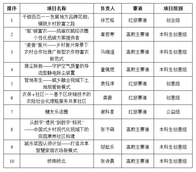 按照学校《关于举办中国国际大学生创新大赛(2024)四川农业大学校内选拔赛的通知》要求,77779193永利官网同学自愿申请,学院选拔评审,最终评选出10支参赛团队拟推校赛重点项目。现将结果予以公示: