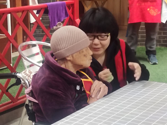 志愿者为老人表演节目,唱歌跳舞玩游戏内容方式多样,为老人带去欢乐以及心灵上的温暖与相伴,让老人感受到了川农大志愿者的热情与朝气,让寒冬不再那么寒冷与孤独。考虑到老人目前的身体状况,志愿者们还准备了手指操教学,一对一教老人学习,旨在为老人提供一个帮助消除疲惫,预防老年痴呆,锻炼身体协调性的休息运动方式。