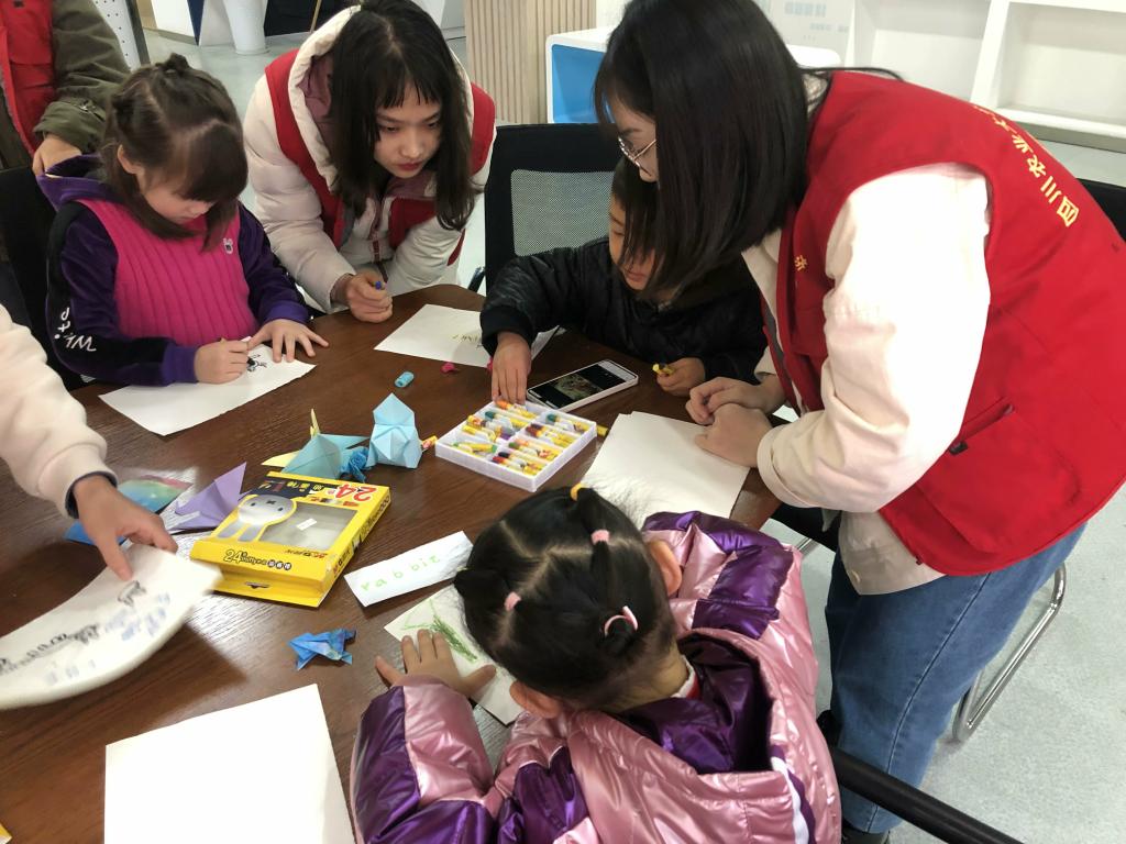 在你画我猜游戏中,小朋友们和志愿者们拿起画笔在画纸上画出了自己喜欢的动物,肆意展示自己,充分激发了小朋友们的想象力和创造力,增进小朋友和志愿者们的感情。