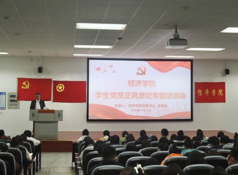 11月13日,学院党委开展学生党员正风肃纪专题教育会,学院党委书记漆雁斌、学院党委办公室负责人和学生党员162人参会。