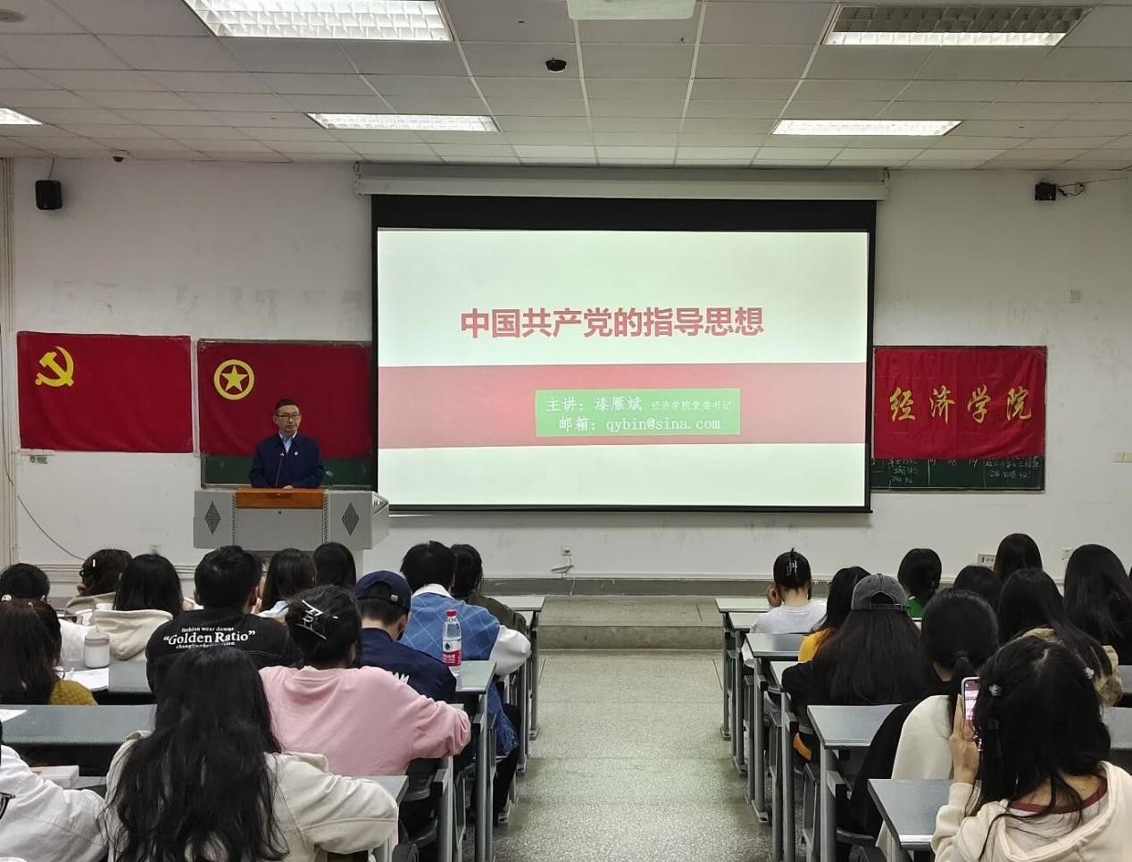 10月31日下午,学院党委党校2023年秋季学期入党积极分子培训班第七次专题授课在四教A105教室举行。学院党委书记漆雁斌作《中国共产党的指导思想》专题辅导报告,本期培训班全体学员及各党支部代表100余人聆听了党课。