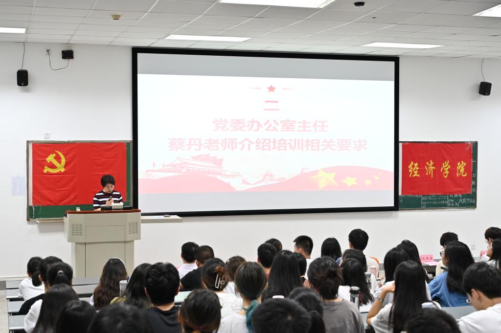 金融学本科生党支部书记陈秋悦同志回顾了自身入党历程。她向学员们分享了心得:一是要谨言慎行,严格约束自己;二是要认真对待党课培训,以高标准要求自己,力争在求知中提升,在实践中升华。