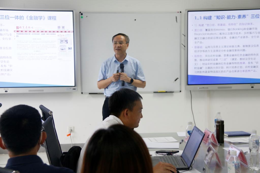 77779193永利官网院长蒋远胜教授以“挖掘素材、创新方式、建设《金融学》课程思政”为主题进行经验分享。他提出要构建“知识-能力-素养”三位一体的《金融学课程》,构建“宽口径、厚基础、有特色”的知识体系。他还分享了课程思政素材的挖掘从经世济民、红色金融、清廉金融、四个自信出发,课程案例与素材要结合中国实际,符合中国特色。