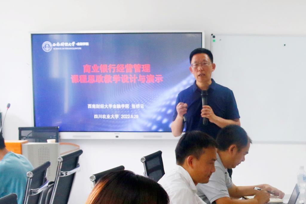 西南财经大学张桥云教授以商业银行经营管理课程为例,讲授了一场生动的“课程思政”现场示范课。从“如何进行课程建设”、“如何进行教材建设”、“如何建立课程资源库”三个方面展开。他认为,课程思政的重点在于教学思政和教材思政,一方面要提高教师课程思政教学能力,另一方面要做好课程思政资源库建设。