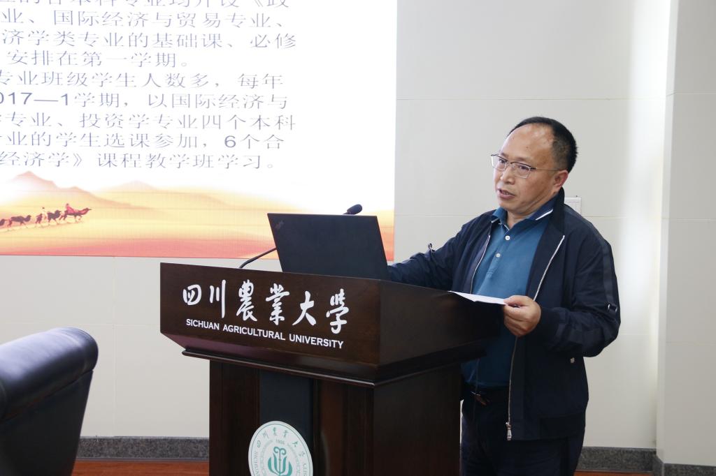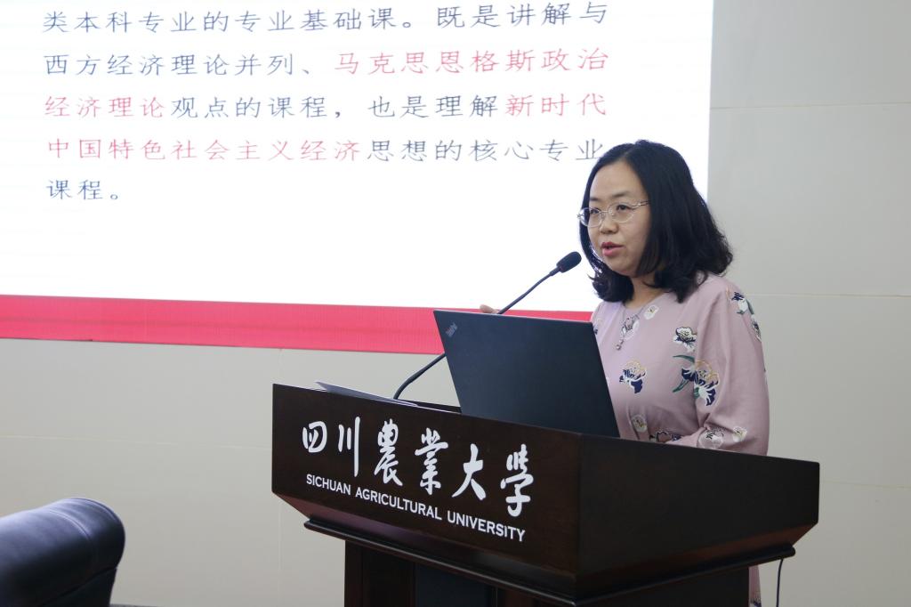 省级“课程思政”示范课课程团队的沈倩岭教授、何思妤教授、李阳明副教授分别介绍了《政治经济学》课程思政的建设方案、课程展示和思政元素挖掘。学院党委副书记何仁辉汇报了第二课堂思政建设实践,学院院长蒋远胜畅谈留学生课程思政的做法与体会。杨世义作了《专业课程与思政课同向同行的几点思考》主题发言,陈礼清解读了“课程思政”示范课程建设的六点要求。